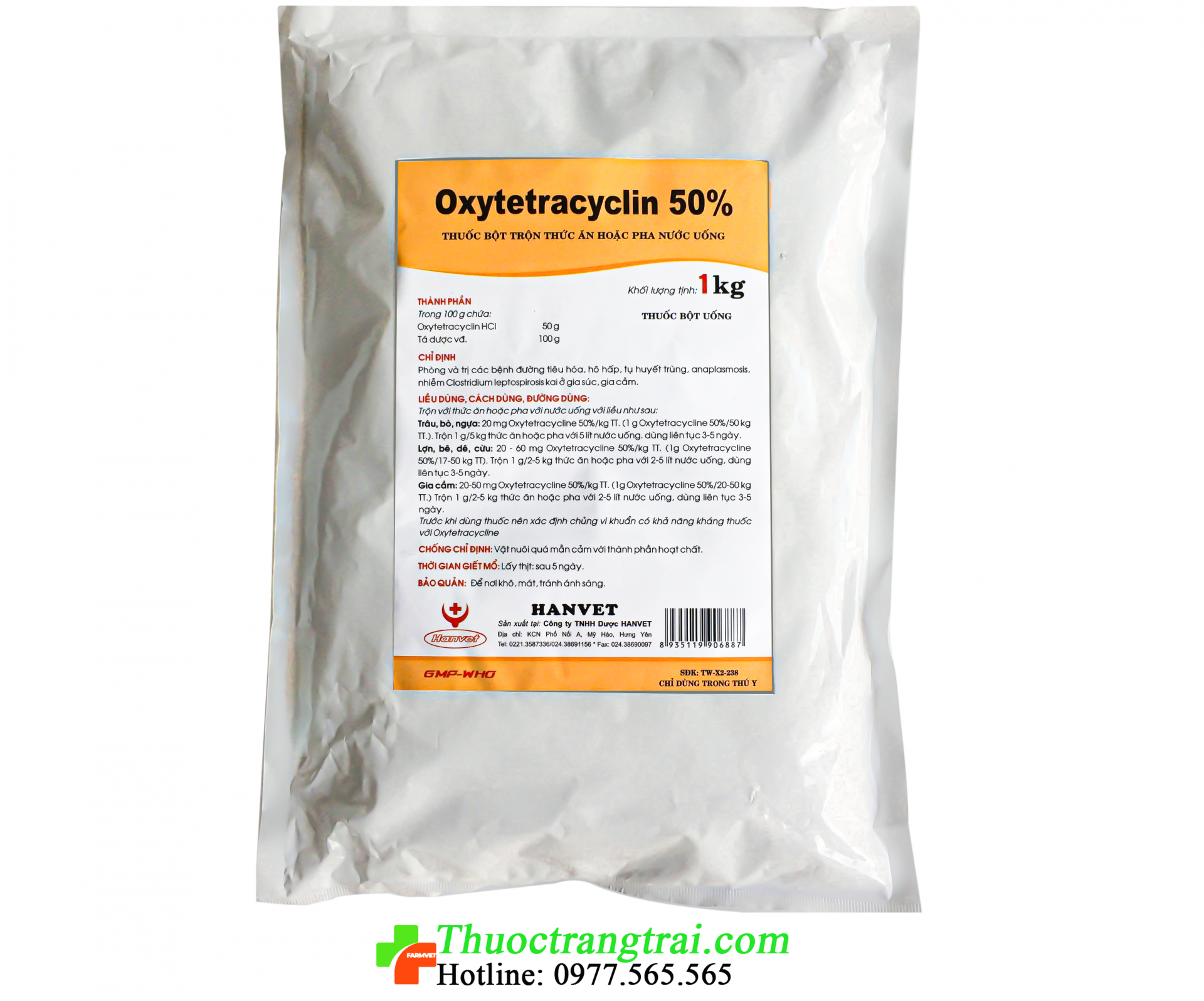 - Oxytetracyclin 50% với liều: 1 kg/ tấn thức ăn